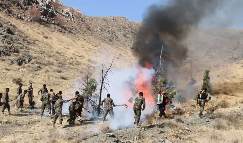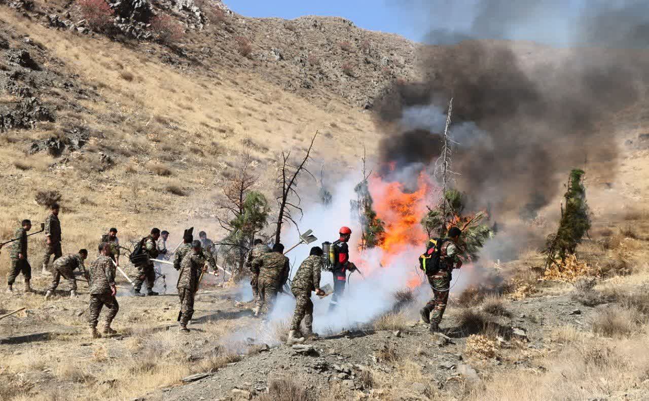 مانور اطفای حریق به مناسبت هفته پدافند غیر عامل در طرقبه برگزار شد
