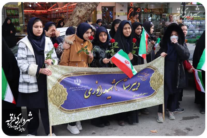 همزمان با دوازدهم بهمن ماه مراسم آغاز دهه مبارک فجر گلباران تمثال امام خمینی (ره) با حضور دانش آموزان و مسئولین و شهروندان در میدان صاحب الزمان (عج) طرقبه برگزار شد. روابط عمومی و رسانه شهرداری طرقبه
